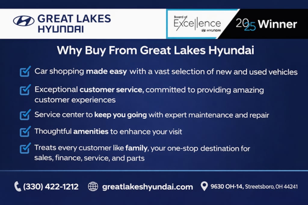 Great Lakes Hyundai is dedicated to your satisfaction before, during, and after your purchase. We'll go the extra mile to take care of you.